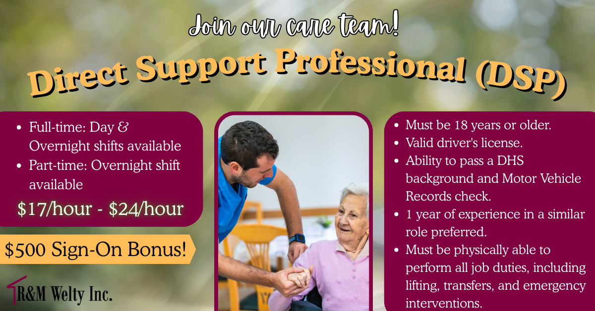 Start a new career as a Direct Support Professional with R&M Welty at our Andover location!